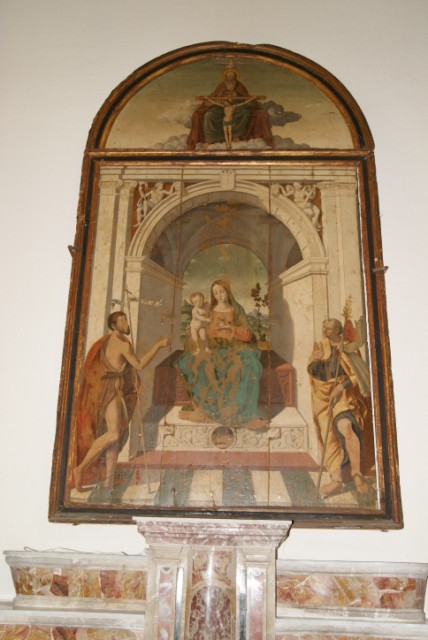 Nella predella in basso, c’è il Redentore, alcuni Apostoli e altri Santi, alcuni finemente lavorati nelle teste.